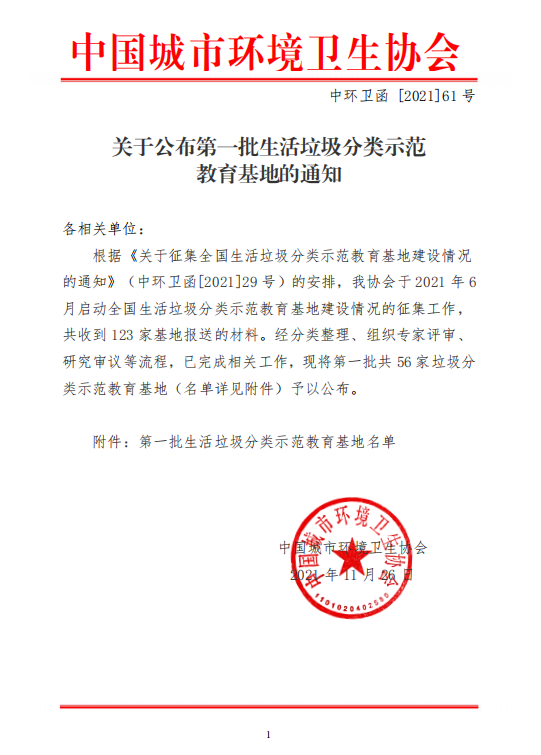 Recently, China Urban Environmental Sanitation Association announced that 56 waste classification demonstration education bases, including the first batch of national domestic waste classification demonstration education bases, Changsha